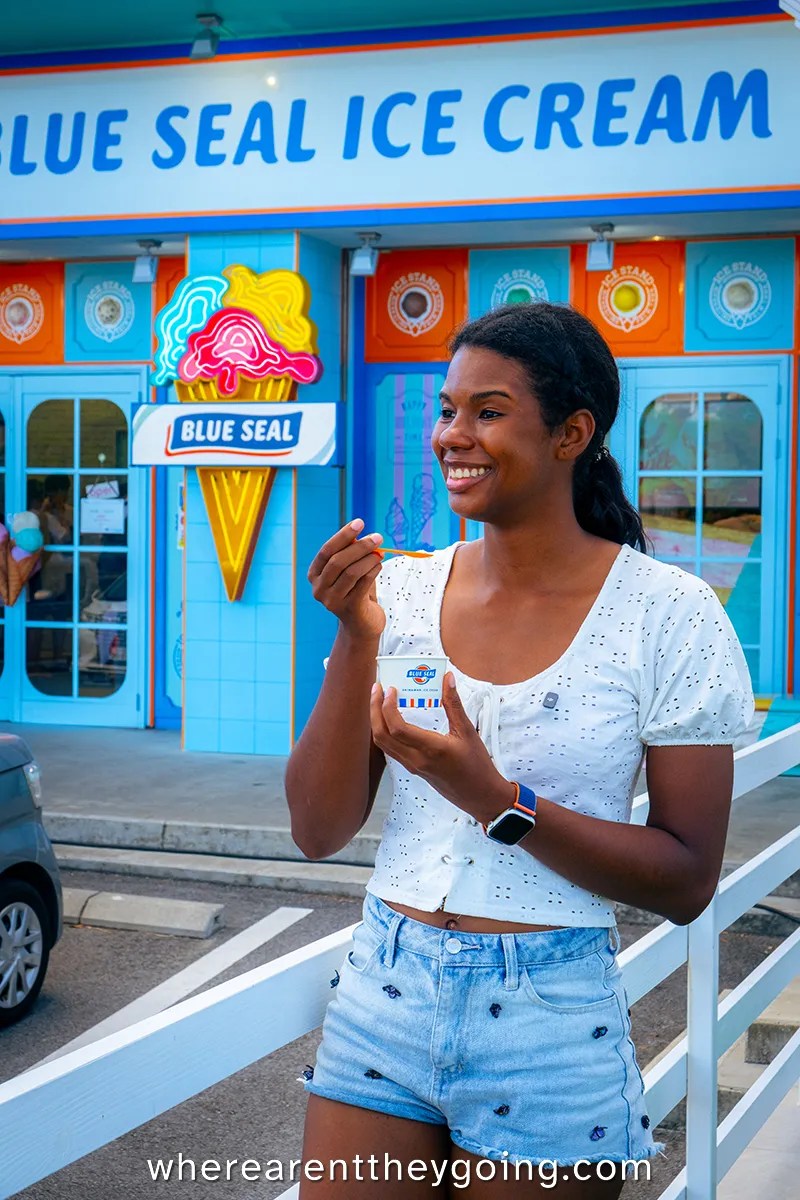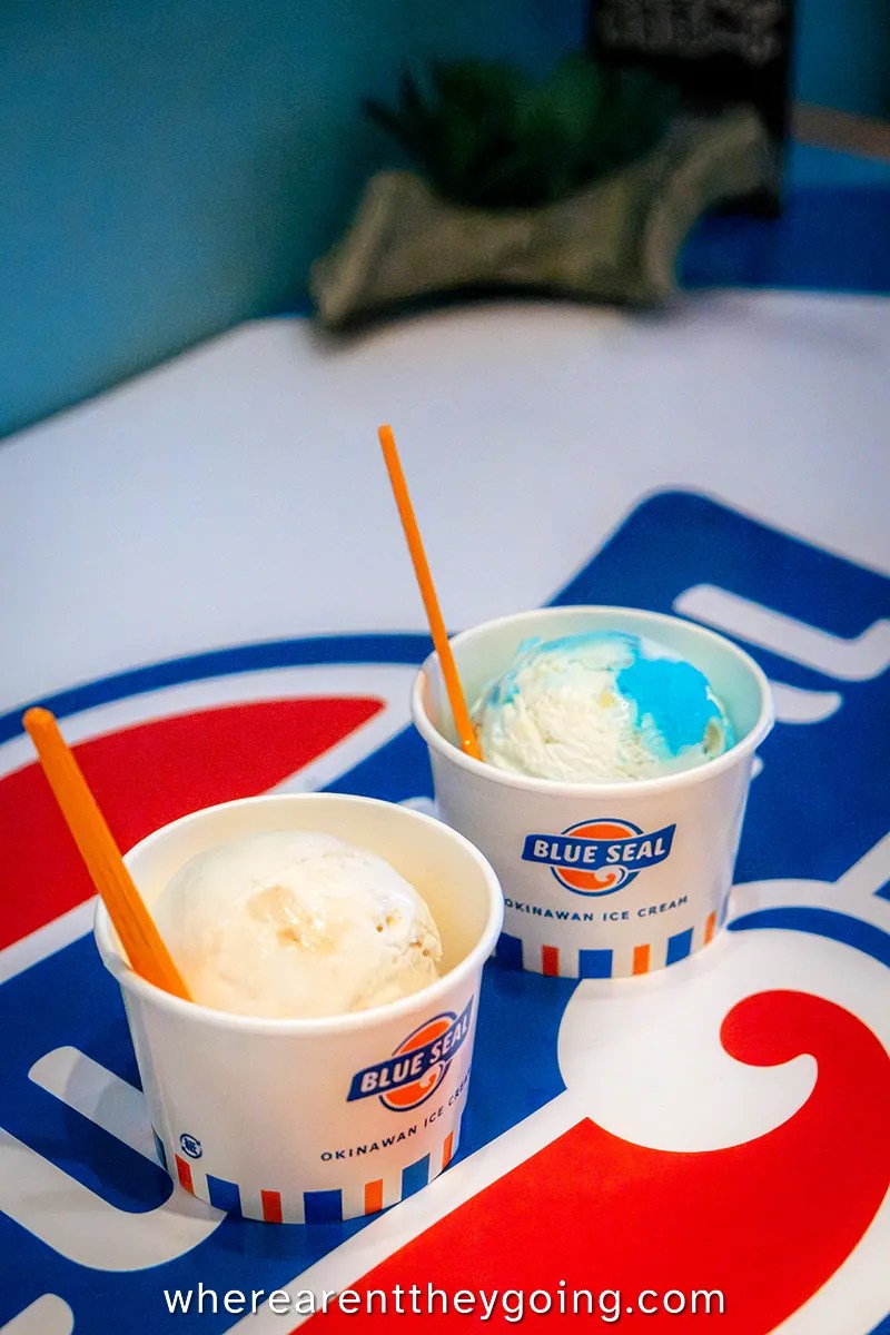Blue Seal is more than worth the hype. The quality of the ice cream is significantly better than other chains like Baskin-Robbins, and the flavors are very unique. I always love to see companies that lean into regional flavors, and Blue Seal really doesnโt disappoint. We noticed that many branches had only some of the flavors, so we were always surprised and excited to find new flavors wherever we went. Even better, the shops are always well decorated with an amazing diner vibe, and the good price lets us know itโs a real product, not just a tourist gimmick. If youโre in Okinawa, Blue Seal isnโt just a good idea. Itโs a requirement, a rite of passage, a mandate. You must get Blue Seal. You WILL get Blue Seal.