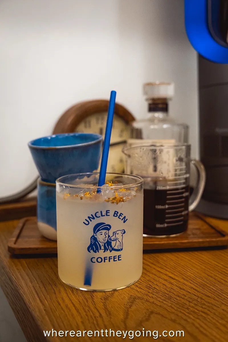 At this point, we were starting to drag, and I wanted some delicious coffee. Hong Kong has hundreds of amazing shops to discover, but we landed on Uncle Ben Coffee. This is a micro-roastery in the heart of the city. The shop only has space for a few people, and itโ€™s very popular, so prepare for a bit of a wait and the possibility of getting your drinks to go. We managed to stand at the bar, and I got a pour over while Yemisi got a craft lemonade. The eponymous Uncle Ben was not there when we visited, but the baristas were super knowledgeable and helped me pick a bean I was interested in, which ended up being from Honduras.