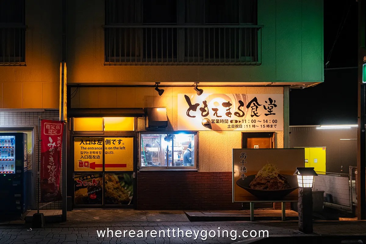 On top of everything else, Takachiho is also known for its quality beef. I try to eat meat with restraint, and I donโt know much about expensive cuts of beef, but this was an opportunity we didnโt want to pass up. The only other time we tried local Japanese beef was in Miyakojima, and that experience was incredible. We decided to go to Nagomi, a restaurant run by JA, the Japan Agriculture Co-op. Here they only sell local beef at grades A-4 and above, which in layperson’s speak means incredibly high-quality. The menu options start at 3,500 yen (20 USD) for 150g of lean steak, all the way up to 9,600 yen (60 USD) for 250g of fillet steak. Honestly, the prices arenโt terrible considering the quality of the meat, but we were still on a budget, so we got a serving of loin and lean steak.