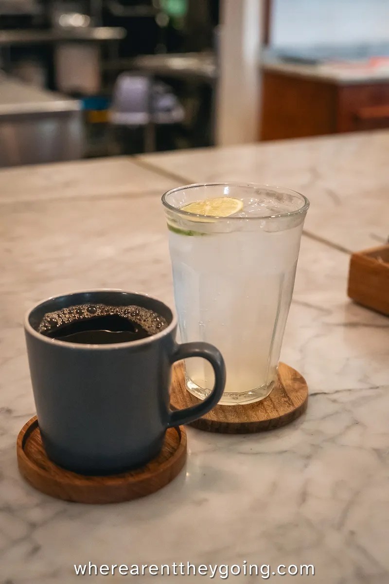 This place is decorated more like a really nice kitchen, with comfortable nooks and bar seating, and a direct view of the food prep area. Their food menu looked amazing, so we were a bit bummed we couldnโt try it out. Thankfully, the coffee was very good. A solid light roast brewed well can never disappoint. Itโs not the best coffee Iโve had, but considering the city’s alternatives, I was very pleased.