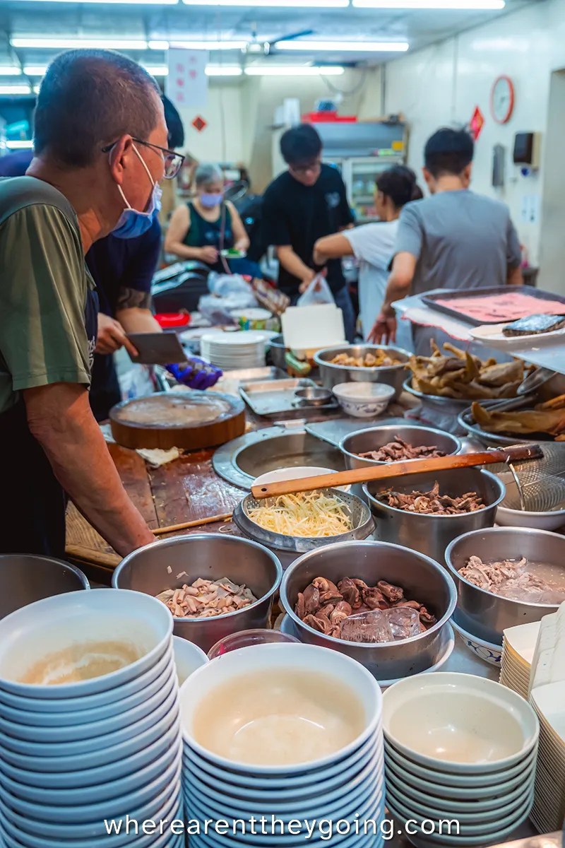 Taiwan is famous for beef noodles, and itโs the first thing we ever ate in the country a few years ago. I absolutely love beef noodles, which is lucky for me since this is the best restaurant for beef noodles in the city. Yemisi found this place because itโs super popular with the locals, and they also serve it with pork knuckle, which is one of her favorites. We decided to get a serving of beef, and pork knuckle, and weโre so glad we did.